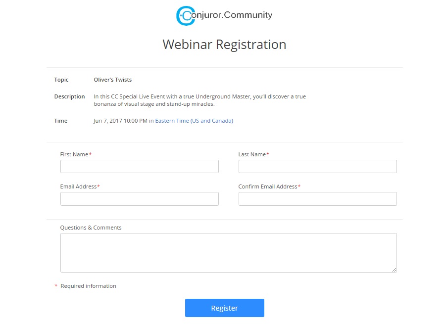 If you clicked the link on the email, make sure you're logged in your Conjuror Community portal. (Logging in is important since all events are FREE for Conjuror Community Club members)